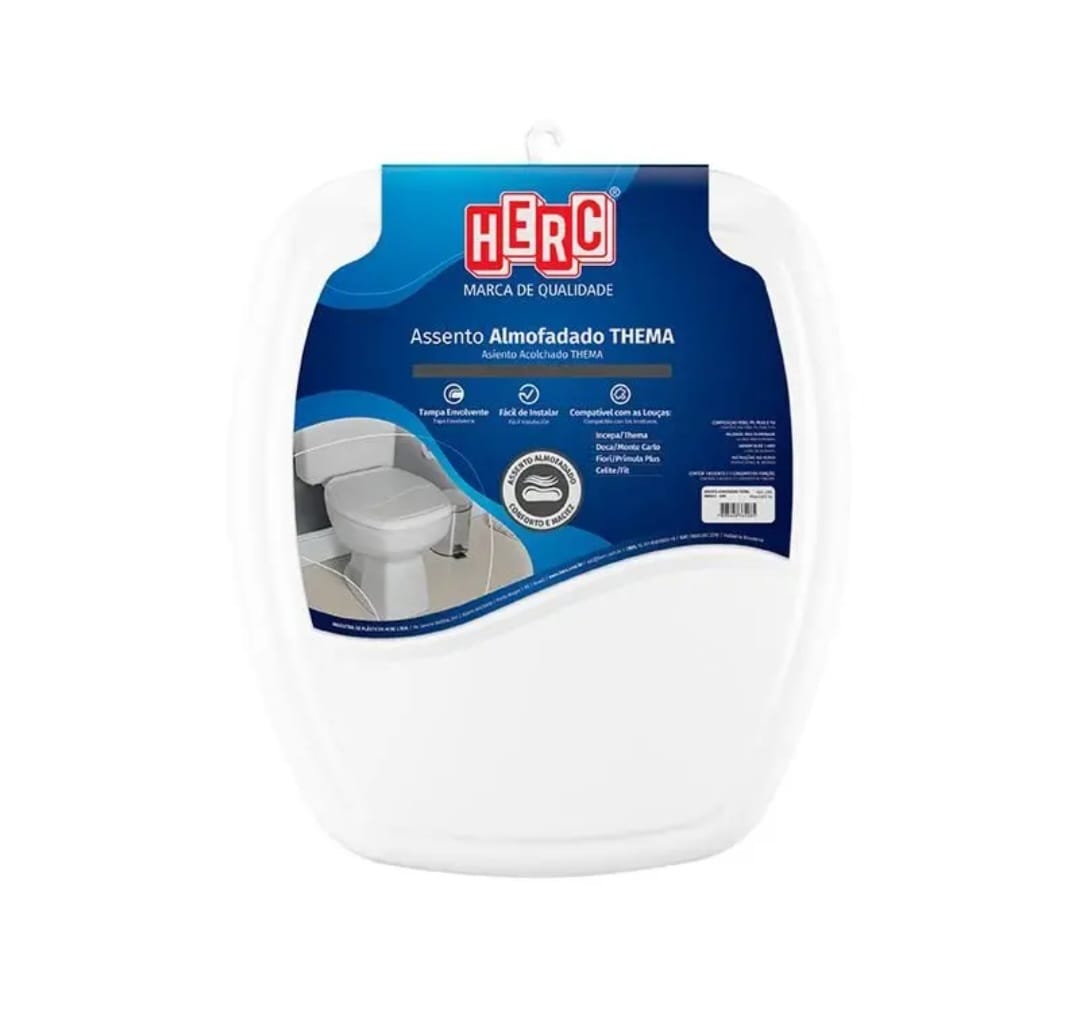 O Assento Sanitário Almofadado Thema Herc na cor branca é a escolha ideal para quem busca conforto e praticidade. Com um design liso e forma quadrada, ele se adapta perfeitamente a diferentes estilos de banheiro, proporcionando um toque de elegancia ao ambiente.